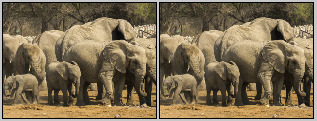 Im Etosha Nationalpark leben etwa 2.000 Elefanten, die hier völlig entspannt leben, da sie hier nicht gejagt werden. Hier am das Okaukuejo Wasserloch kommen sie, um zu trinken und zu baden.