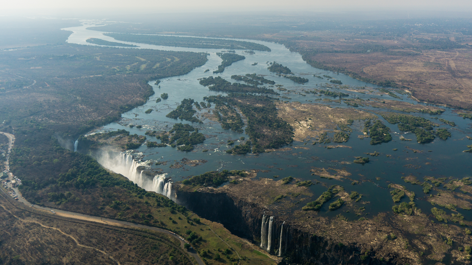 1855 entdeckte der schottische Missionar David Livingston die beeindruckenden Wasserfälle und benannte sie nach seiner Königin Victoria. Die Einheimischen nennen sie „Donnernder Rauch“ – denn in der Regenzeit donnern hier pro Sekunde 10 Millionen Liter Wasser herunter.
